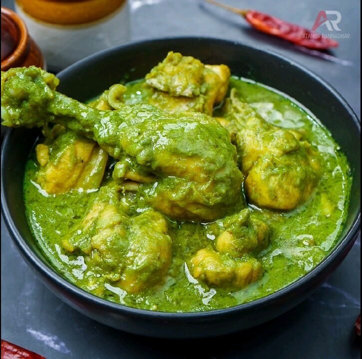 Dhonepata Chicken is a fragrant Bengali dish cooked with fresh coriander paste, green chilies, and mild spices for a fresh herbal flavor.