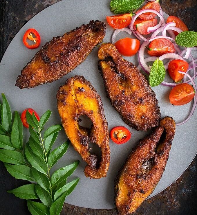 Spicy pan-fried hilsa with aromatic masala