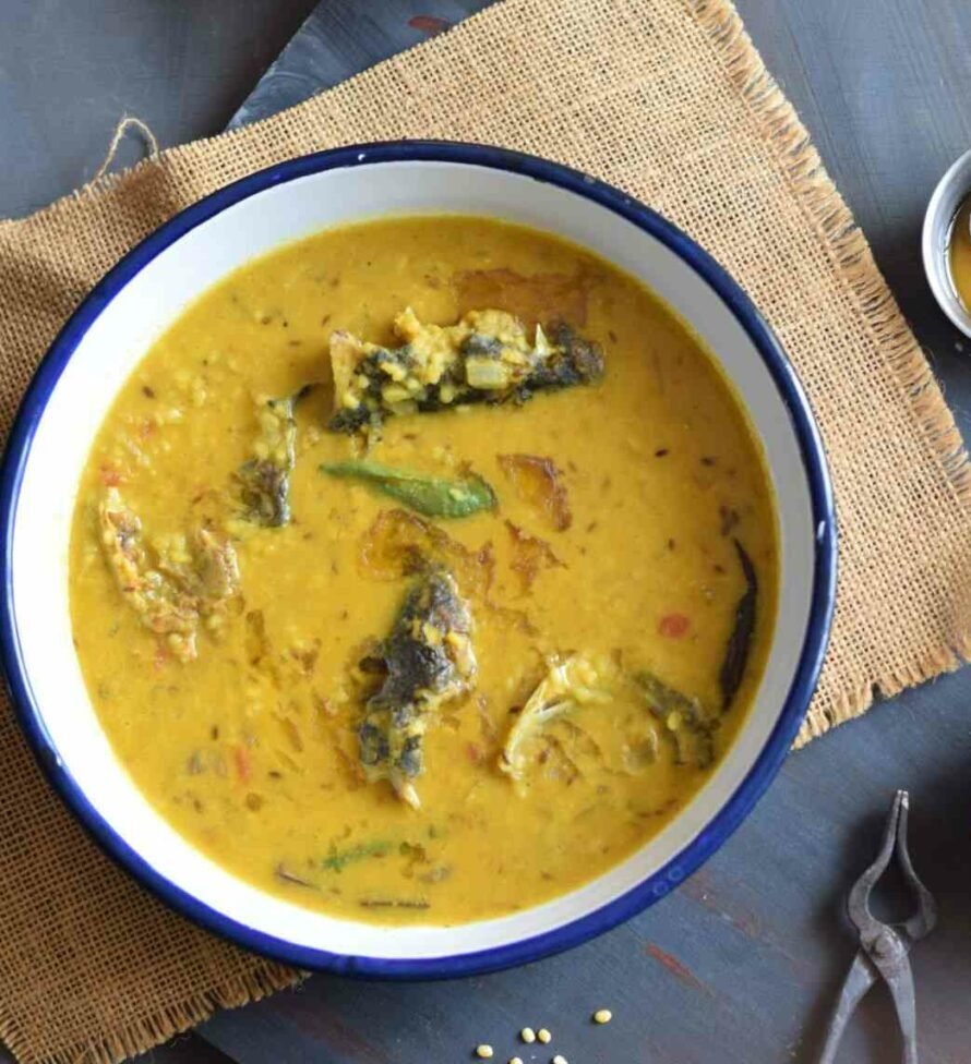 Machher Matha Diye Dal is a traditional Bengali delicacy where slow-cooked dal is enriched with fried fish head.
