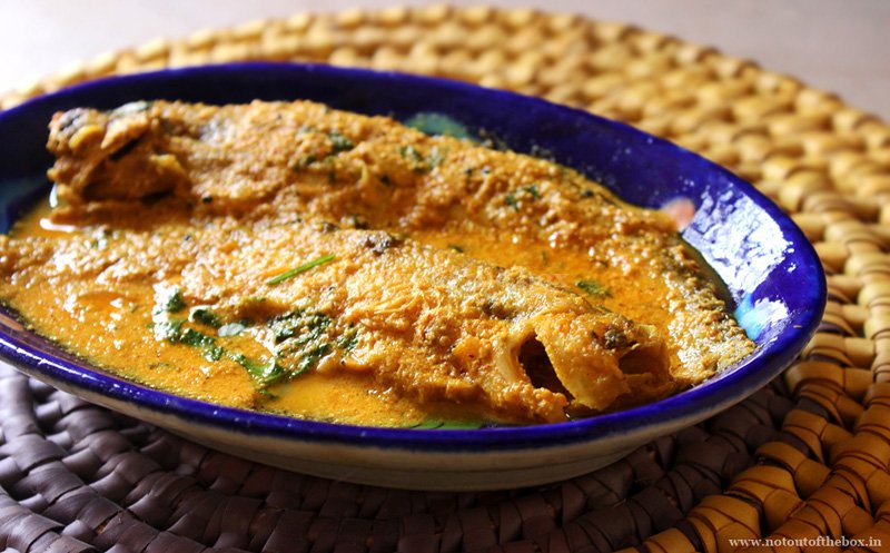 Pabda fish cooked in bold mustard paste with green chillies.