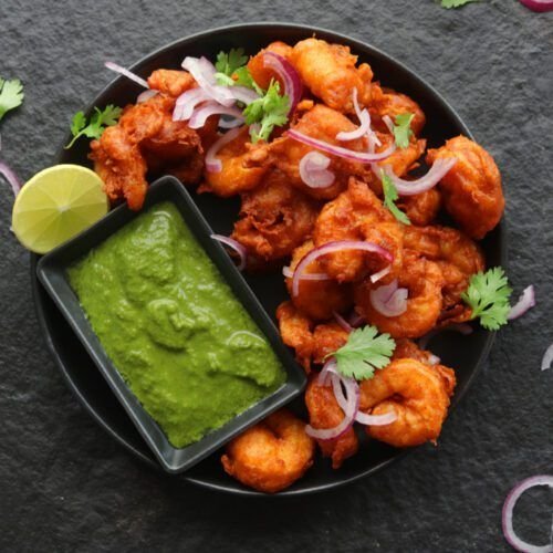 Juicy prawns mixed with onions and light spices, deep-fried till crispy and golden 😋 A perfect crunchy snack to enjoy with hot chai ☕✨