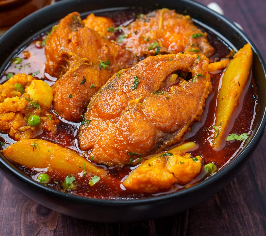 Authentic Rohi Machha Phulkobi Aloo Jhola cooked with fresh rohu fish, cauliflower, and potatoes in a light, flavorful Odia-style gravy. A wholesome comfort dish! 😋🍛🐟